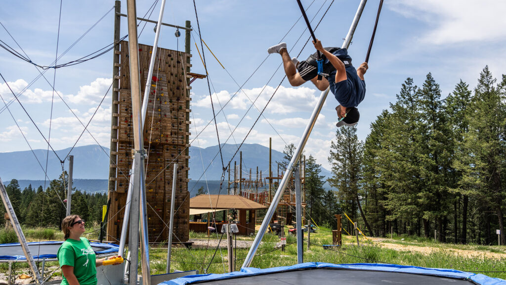Strap into the bungee harness and jump for maximum air on the Big Horn Bounce.